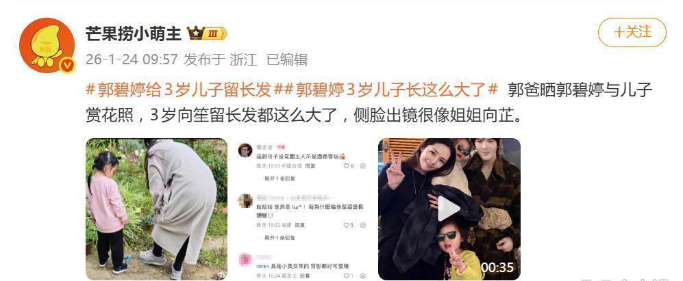 郭碧婷3岁儿子向笙的一组生活照,意外在网络上“炸”出了育儿理念的“大讨论”。起因很简单:小家伙过肩长发扎着小辫,身穿粉色上衣,在自家大花园里赏花的侧影,被众多网友一眼认成了“二胎女儿”。据网友1月24日爆料,郭碧婷父亲在社交平台晒出女儿带外孙玩耍的照片。画面里,向笙长发飘飘的造型,加上与5岁姐姐向芷极为相似的精致侧脸,让“误认”变得顺理成章。郭父不得不在评论区亲自澄清强调“是儿子”,并透露其发长甚至已超过了姐姐。照片中同时曝光的,还有郭碧婷家令人惊叹的宽敞私家花园,以及她本人一身灰外套配运动鞋的休闲装扮,被网友评价为“豪门生活里的接地气瞬间”。