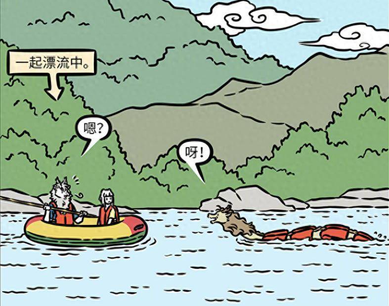 这天九月和敖烈一起玩漂流,就在两人坐在皮划艇上的时候,一条穿着救生衣的龙朝他们的方向游过来