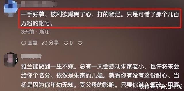甚至为了博取眼球,在直播间曝光朱家的私事,丝毫不顾及朱家的脸面。